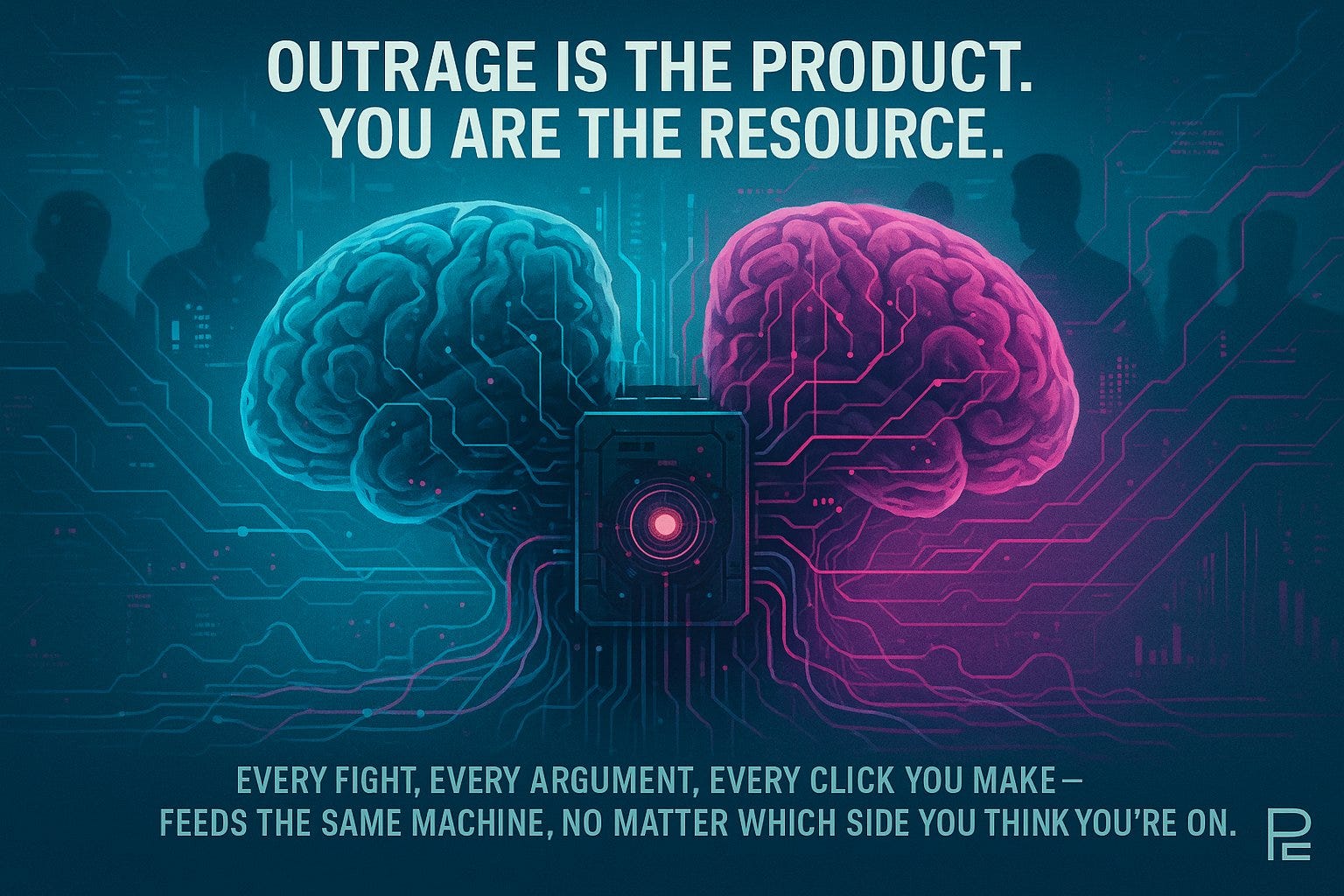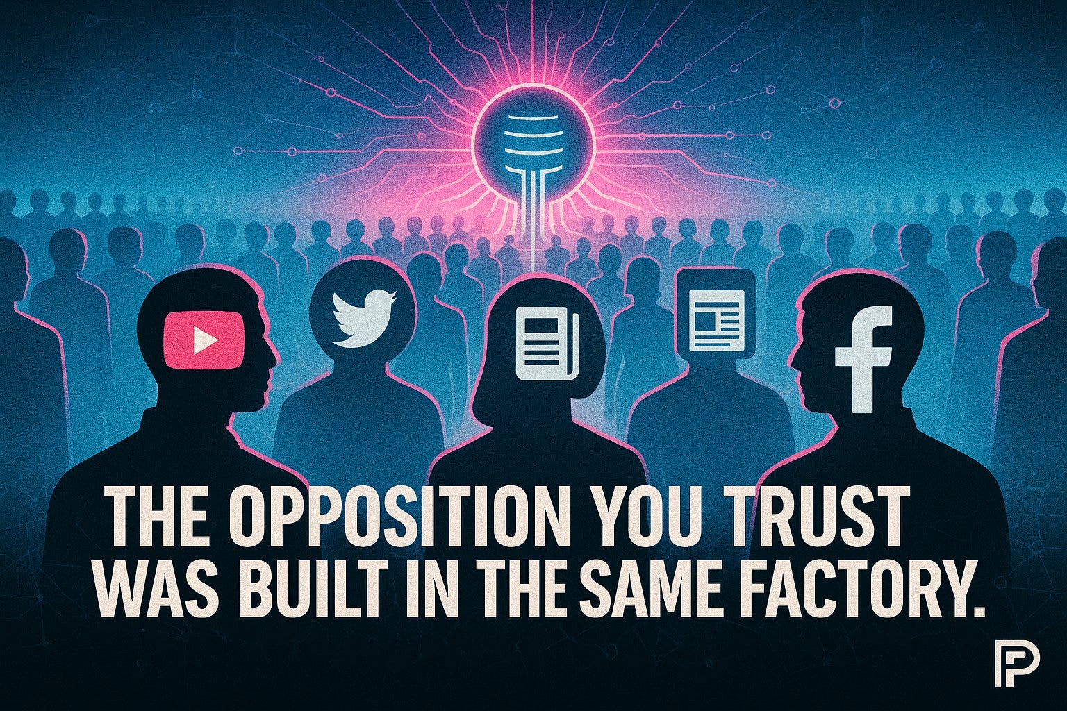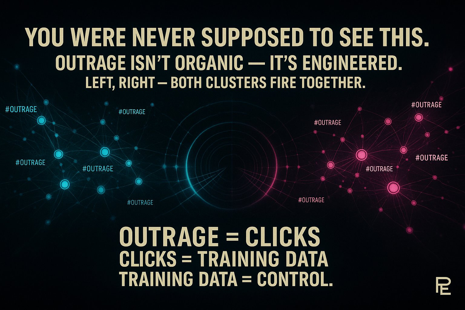 Amplifier bots aren’t ideological. They’re infrastructure. Same tech. Same owners. Same machine. MAGA vs. Resistance? Two costumes. One actor. And you’re the audience they’re programming.