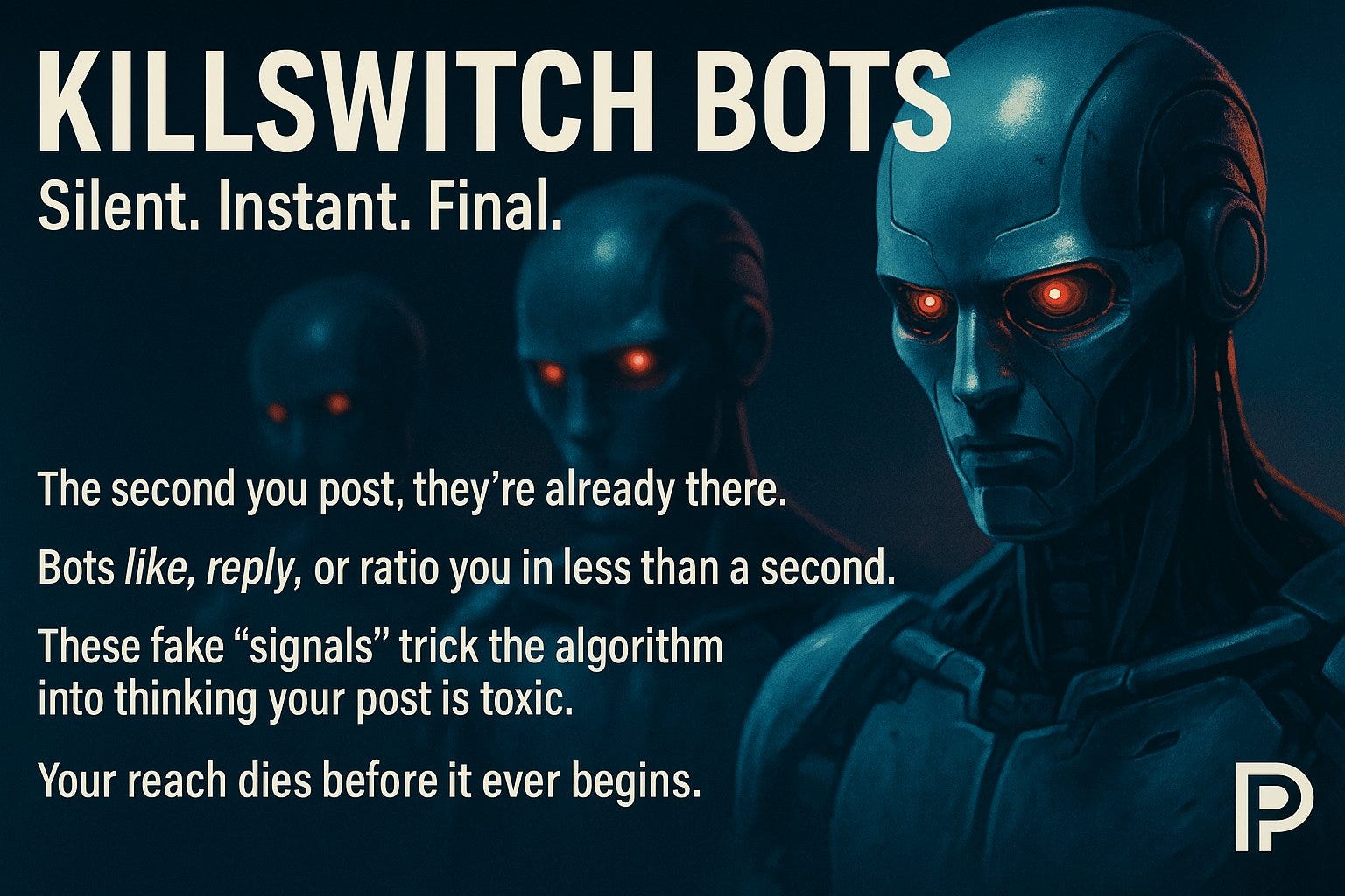 Suppression Receipts When someone posts something “wrong,” bots and fake accounts flood their replies. It feels like thousands of real people disagreeing, but it’s not. It’s a machine making noise to scare you into being quiet. The goal isn’t to change your mind — it’s to make you stop talking.