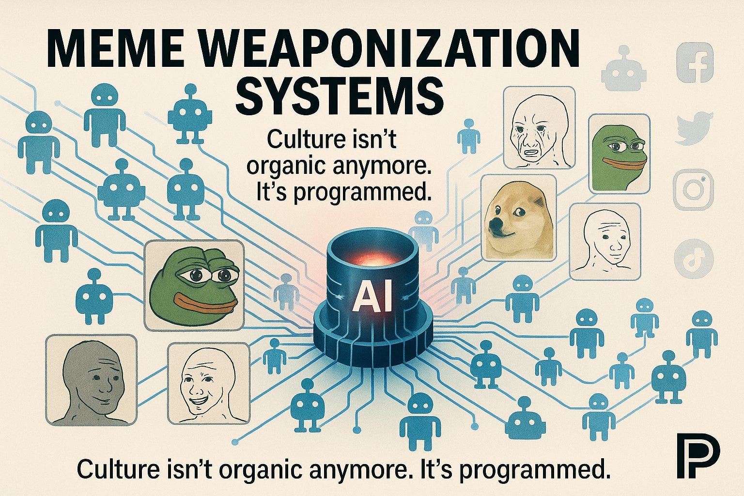 The memes you see aren’t random. Networks of bots and AI push the same memes across thousands of accounts at once. They test which ones make you laugh, rage, or share — then flood your feed with them. Memes shape opinion faster than articles ever could. Imagine if a robot handed the same joke to every kid at school and told them all to say it at the same time. You’d think everyone came up with it — but really, one machine did. That’s how memes control what feels ‘normal.’