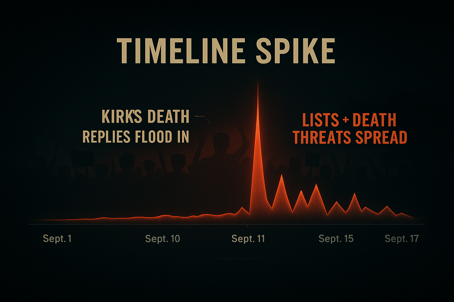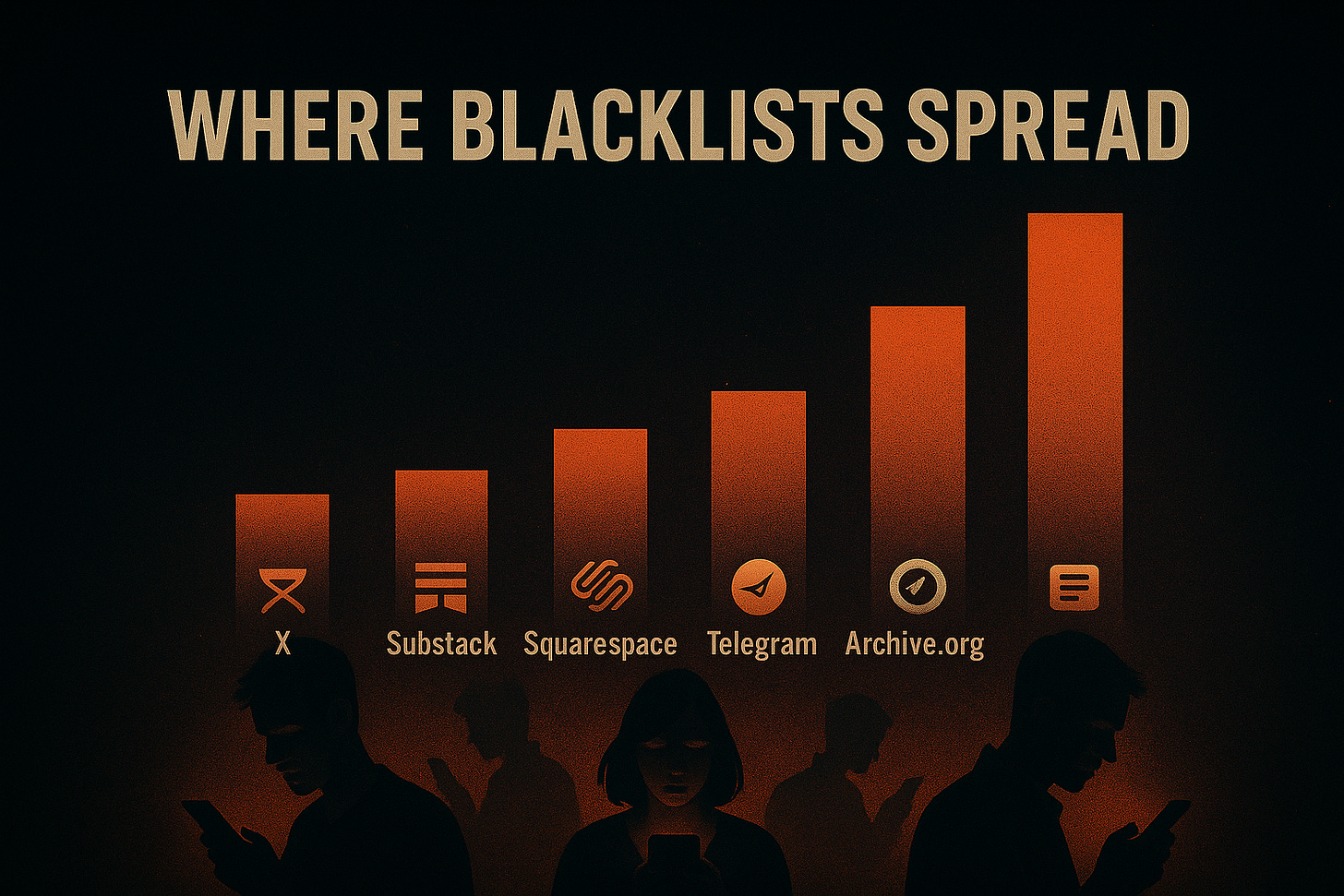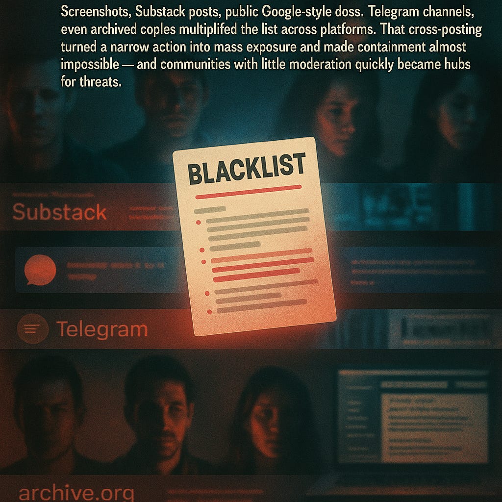 Screenshots, Substacks, Pastebins — all sharing “blacklists” of people who mocked Kirk. The machine turned grief → weapon.